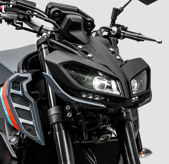 Pronta para superar qualquer desafio, a MT-09 ABS 2024 apresenta design arrojado, com novas e maiores tomadas de ar, rodas em liga leve e faróis duplos de LED. Carregando tecnologias de ponta, ela também traz o sistema Quick Shift. Nele, as trocas de marchas são feitas ao pressionar o pedal do câmbio, sem a necessidade de acionamento da embreagem. Isso mantém a rotação do motor sempre alta, para te levar aonde quiser. A MT-09 ABS 2024 está disponível nas cores Storm Fluo, Metal Black e Racing Blue.